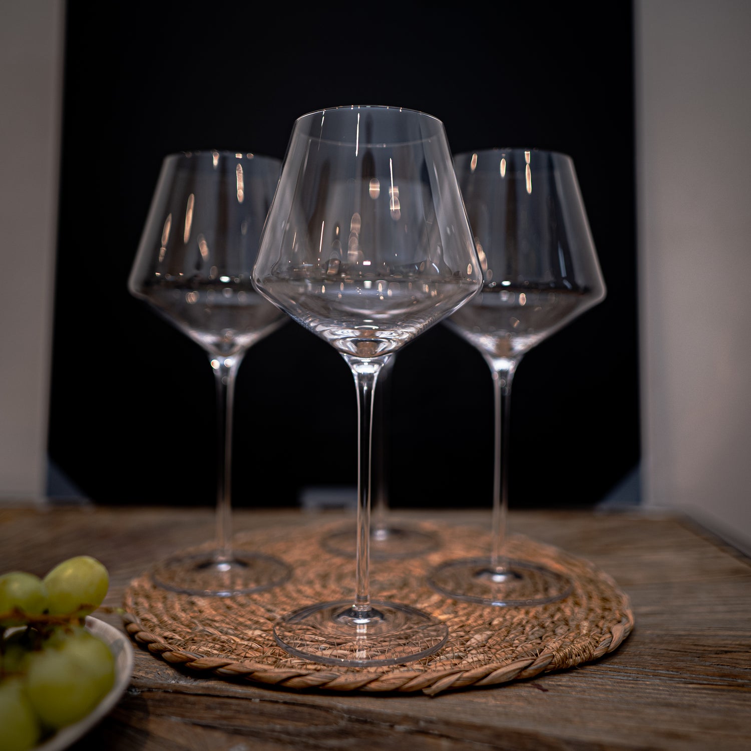 Our glasses are made from crystal as opposed to glass. Crystal is much stronger and durable and so can be made thinner; resulting in an elegant, lightweight and ultra thin glass that brings nothing but pleasure with each sip of your favourite wine.